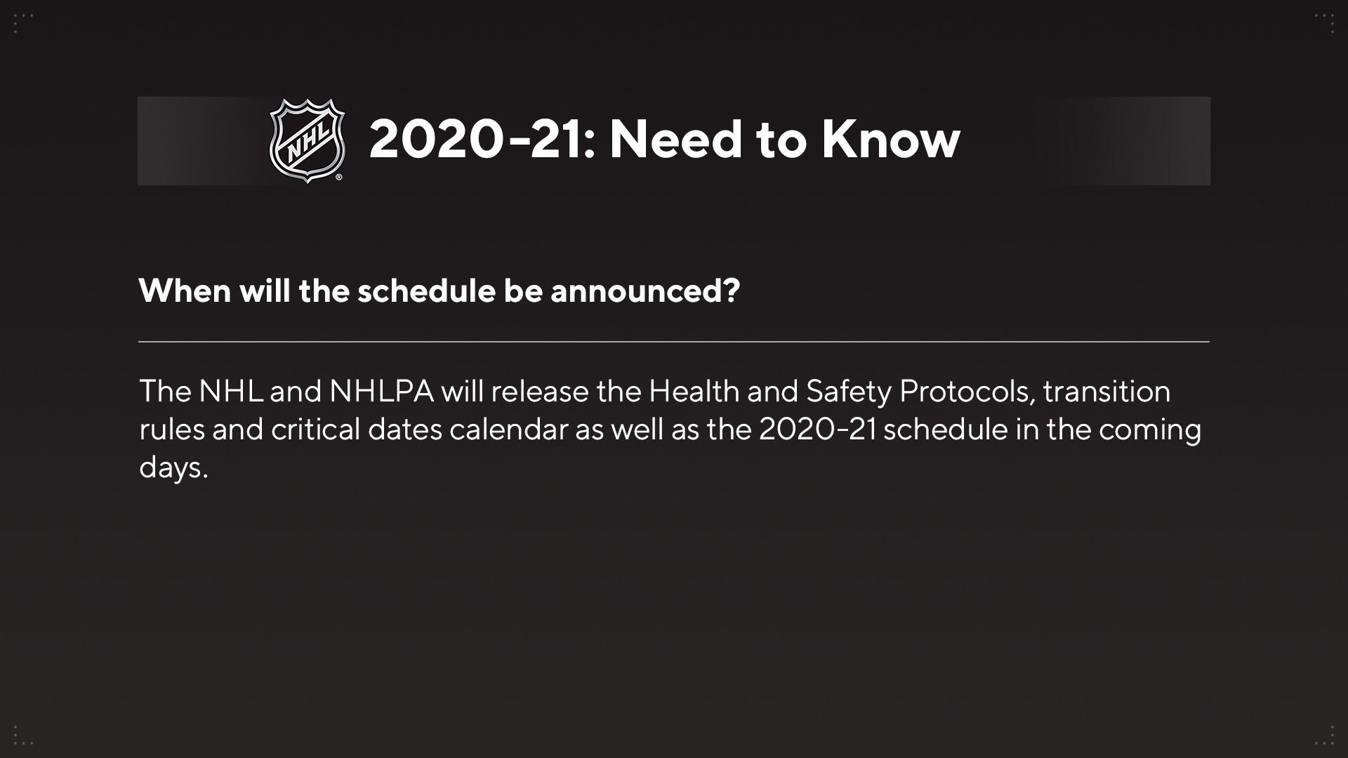 Nhl Public Relations On Twitter When Will The 2020 21 Nhl Regular Season Schedule Be Announced