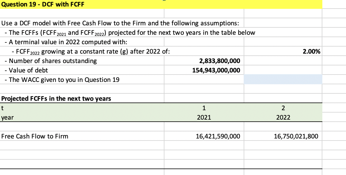 Question 19 Dcf With Fcff Use A Dcf Model With F Chegg Com